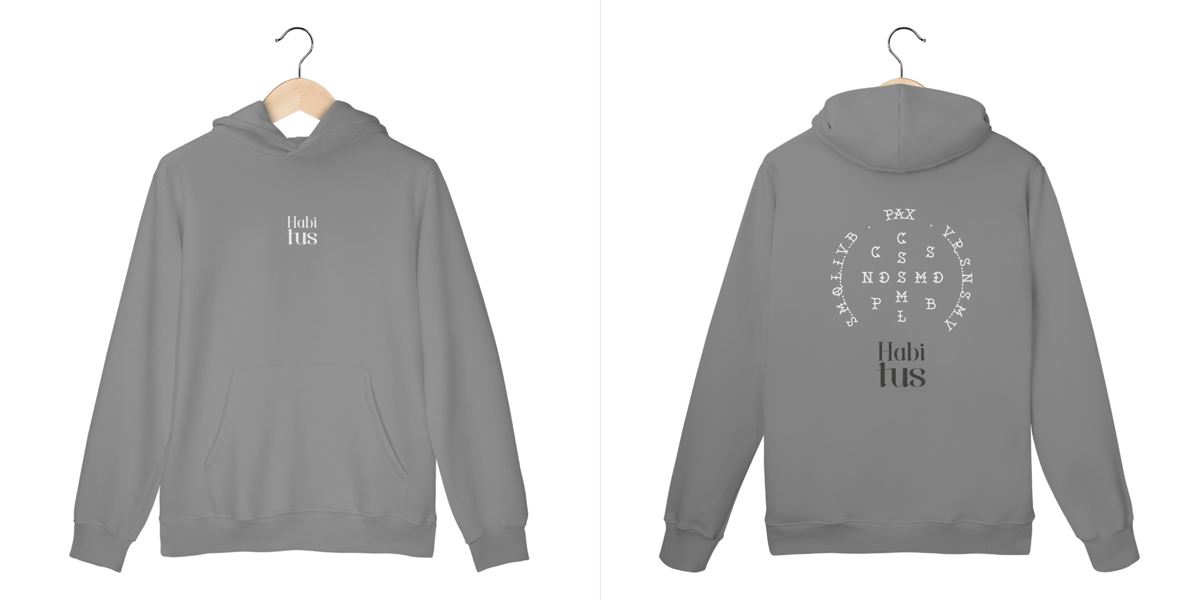 Vista sua fé, vista Habitus! O blusão Habitus em algodão e poliéster possui interior confortável flanelado, punho e barra em retilínea. Conta com inscrição da Medalha de São Bento. Uma peça com propósito, para você carregar a história da fé no seu dia a dia.